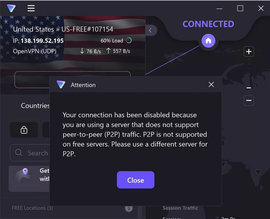 Free servers block all torrenting & P2P traffic