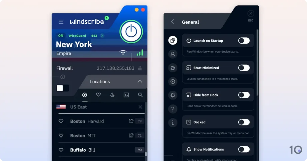 Similarly to Proton VPN, Windscribe’s apps are user-friendly and have all the key security and privacy settings you need from a VPN service.
